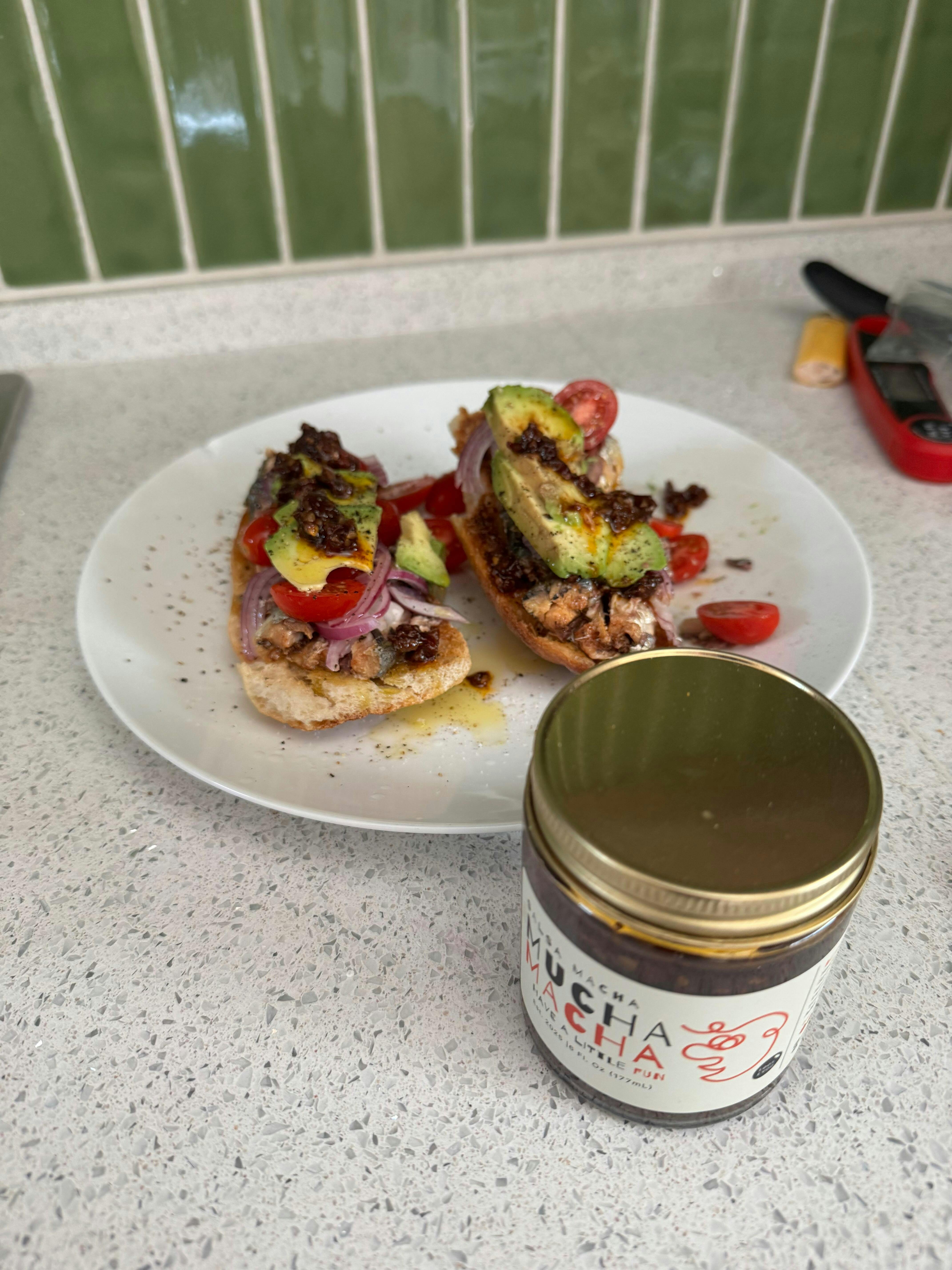 Everyone at home is enjoying mucha macha! The jar is going by fast. We use it on lunch and dinner dishes. Goes well with bowls, wraps, chicken, fish, veggies, quesadillas… you name it! Can’t get enough of it